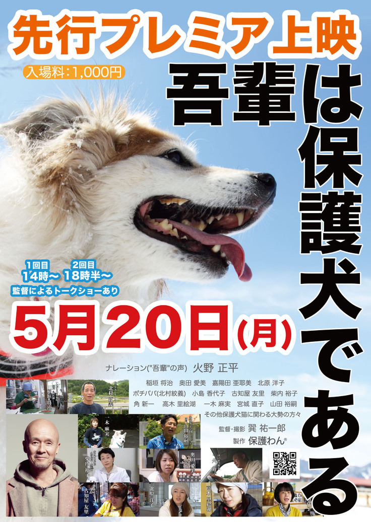 5月20日に映画「吾輩は保護犬である」の先行プレミア上映を川崎アートセンターにて行います!