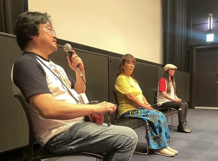 上映後のトークショーでは、私と古知屋代表、北原さんで行いました。