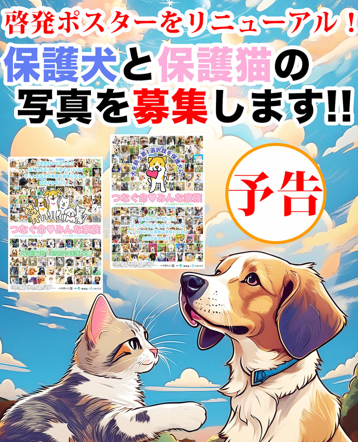 新たに啓発ポスターに載ってくれる保護犬と、今回は保護猫たちを募集します。