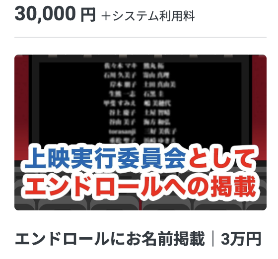 【リターン紹介④】エンドロールにお名前掲載|3万円