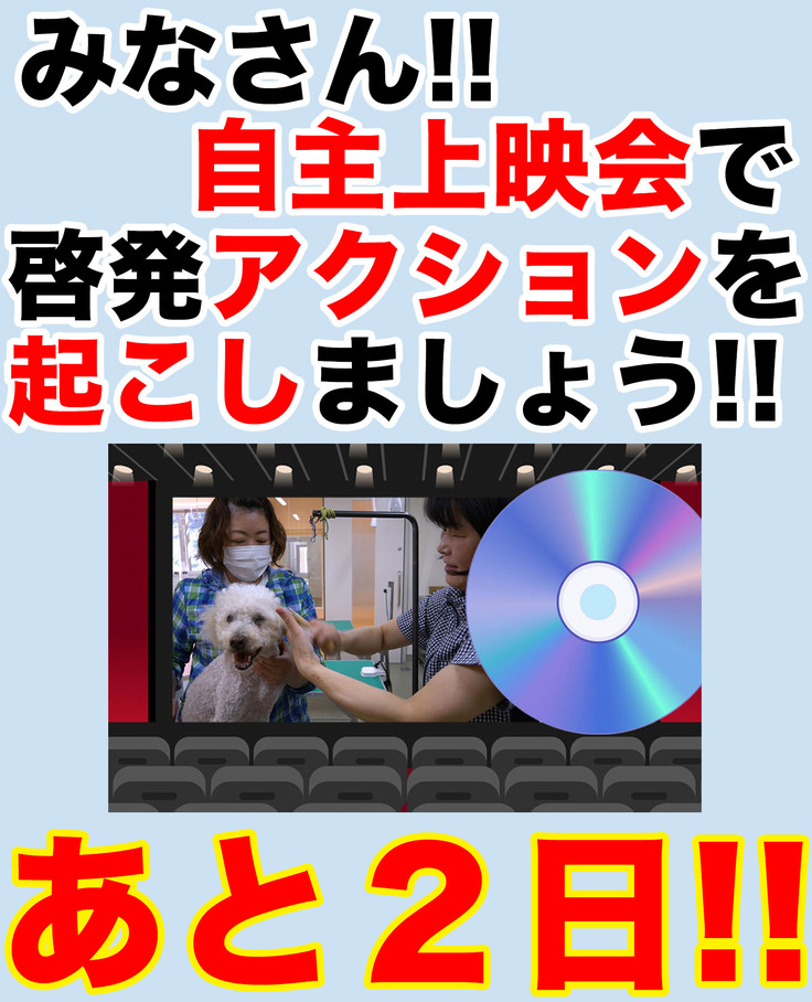 保護わんの有志として、お仲間や、お友だち、ご親戚を巻き込んで、上映会を行うアクションをぜひ実現して下さい!