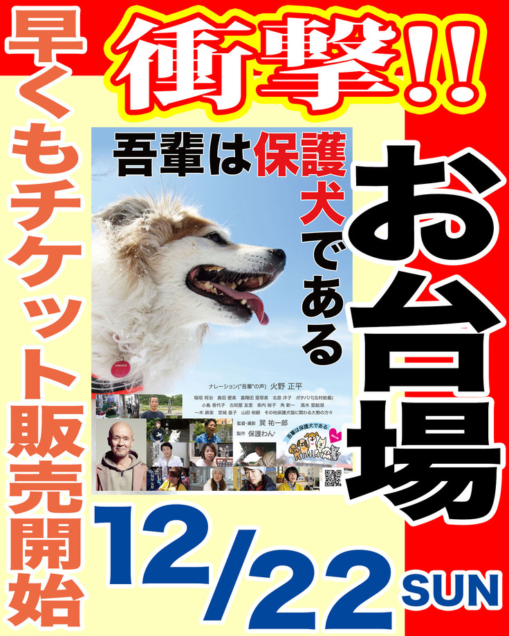 東京/茨城/沖縄/京都/愛知/埼玉/福岡で満員御礼のドキュメンタリー映画「吾輩は保護犬である」は、愛犬家の俳優・火野正平が演じる主人公"吾輩"の声を水先案内犬として、保護犬と人間とのポジティブな関係を描き出し、その強い絆から生まれる感動のストーリーを、保護犬と人間の共生の幸せな未来に向けてメッセージとして送ります