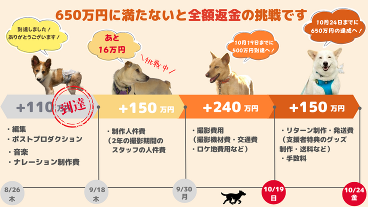 本プロジェクトは第一目標の650万円まで到達しなければ、全額返金となるAll or Nothingの挑戦です。