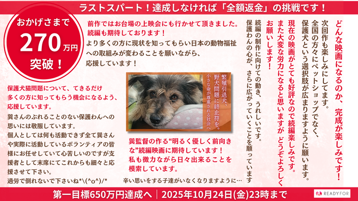 どうか最後まで、応援・拡散・ご支援をよろしくお願いいたします。