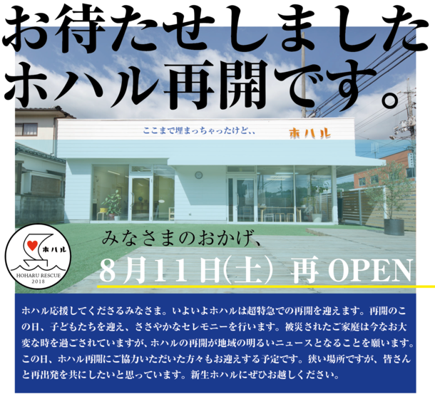 再オープンまでおかげさまでホハルは一ヶ月で再開することができました。