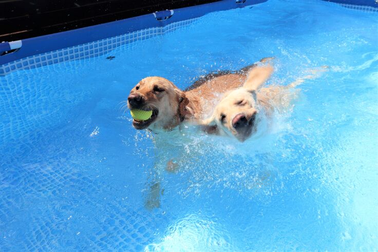 現在、卒業を目指して訓練に励んでいます。2頭とも特技は水泳です。