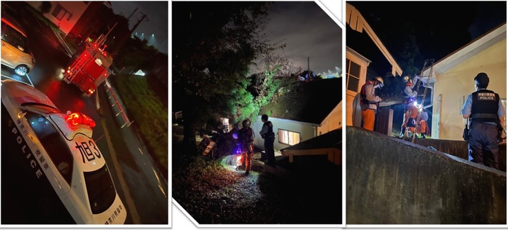 その後は警察、消防に連絡をし、現場検証と応急処置を行って頂きました。その頃は台風7号の影響で数日前から降水量が多く、倒れた大木の周辺の地盤が緩んでしまったことが原因でした。