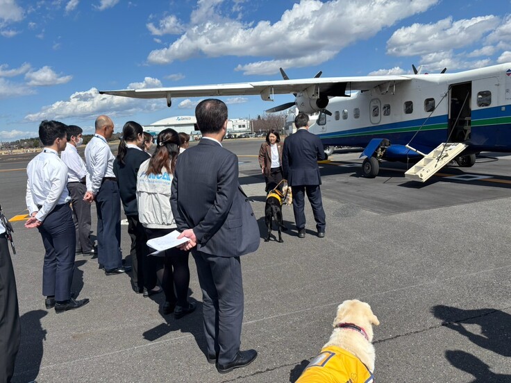 航空会社での補助犬ユーザー及び補助犬受入れ検証の様子