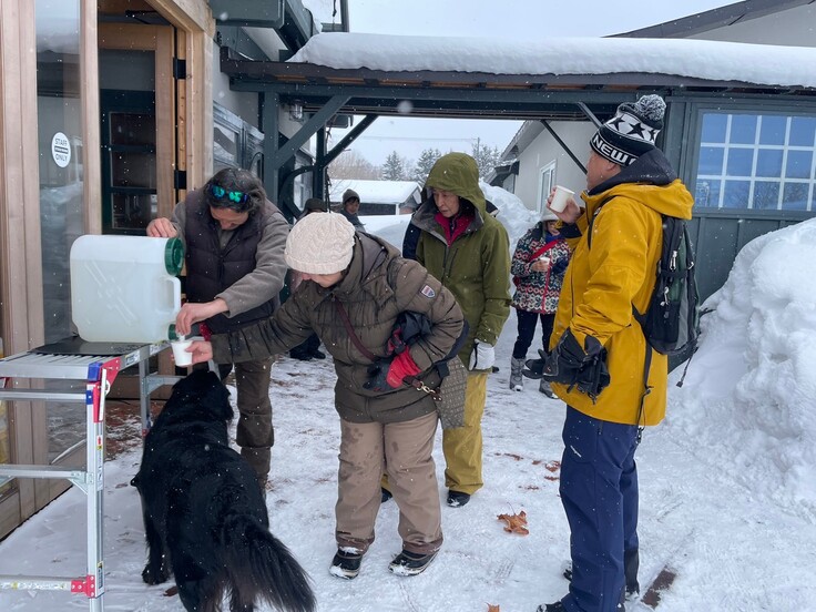 先週採取した樹液をみんなでお味見、しっかりサップがアテンドしてくれました!