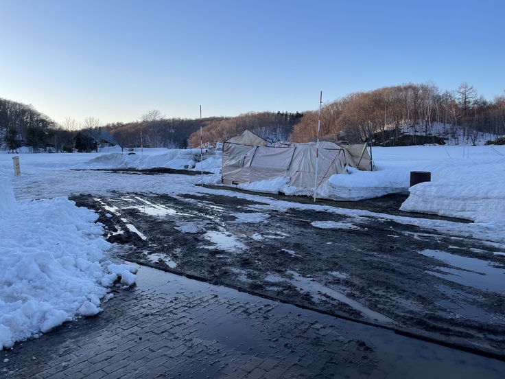 雪解けが進むにつれて・・・見えるテントですが
