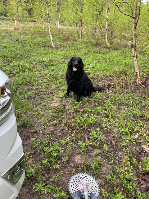 そんな作業を見守るのはサップ君です。周囲を見回り、熊や野生動物がマークさんの近くによって来ないか、目と鼻を使って監視中です!