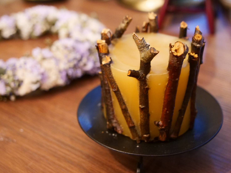 イタヤカエデの枝が周りについており、使った後もオブジェとして飾っていただける