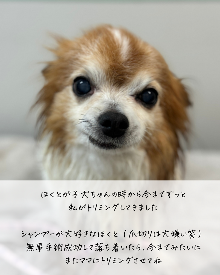 無事手術成功して落ち着いたら、今までみたいにまたママにトリミングさせてね。