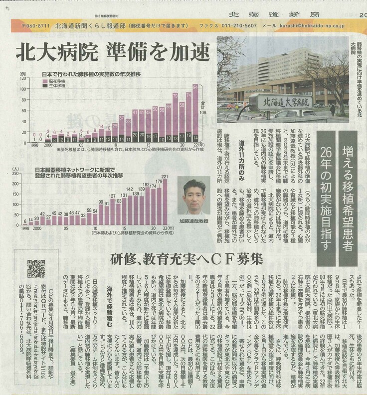 さて、本日4月12日に北海道新聞様に記事を掲載していただきましたので、ご紹介いたします。