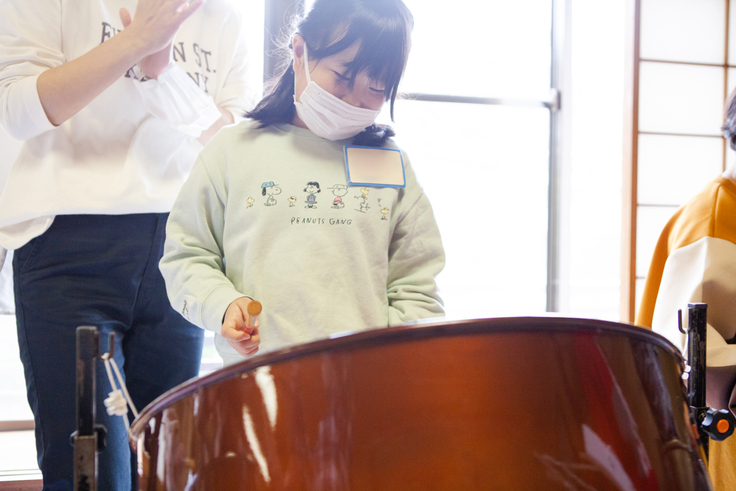 聴くだけで勝手に身体が動いてしまう!今にも踊り出してしまいそうな、楽しくて響きの美しい曲で、子どもたちもその演奏に釘付けでした。「早く楽器に触りたい!」そんな期待に満ちた表情が印象的でした。