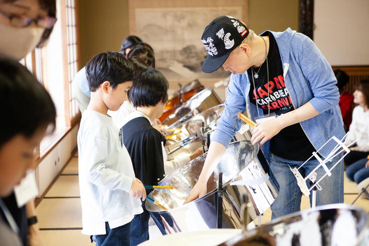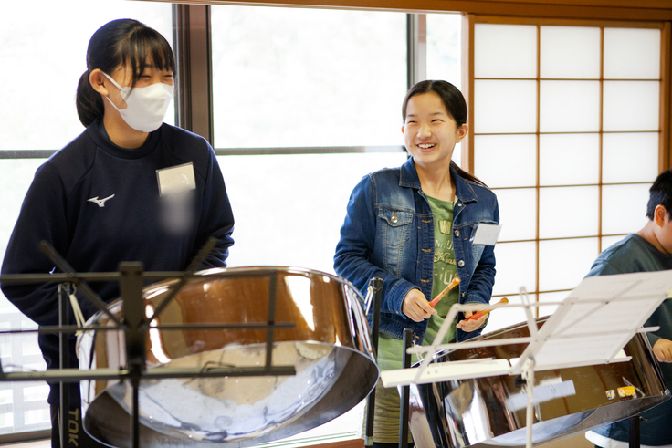 そんな中、経験者の子どもたちというと、以前いっしょに演奏したチームメンバーとの再会に、嬉しそうな様子。久々にスティールパンの音を鳴らしながら、「あ!思い出した!こういう感じだよね」「そうそう!笑」と笑い声が絶えません。