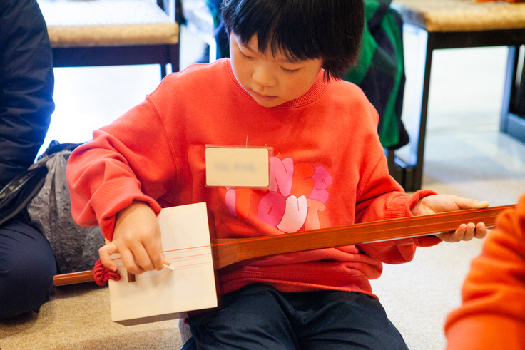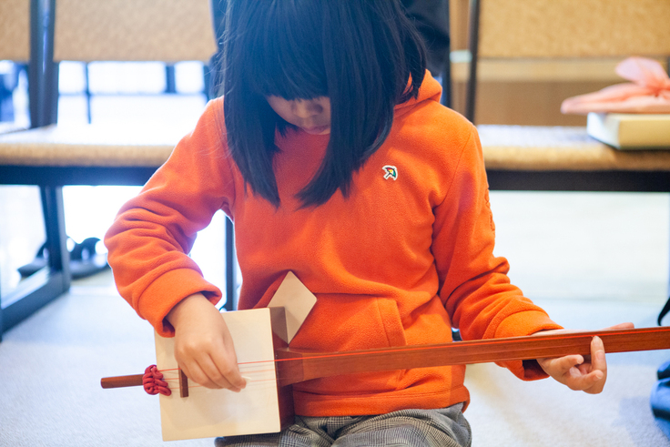三味線は、子どもたちでも扱いやすいよう、今年から「シャミコ」を取り入れることにしました。