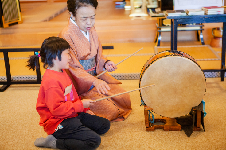 そのあとは、大鼓や楽太鼓にも挑戦しました。
