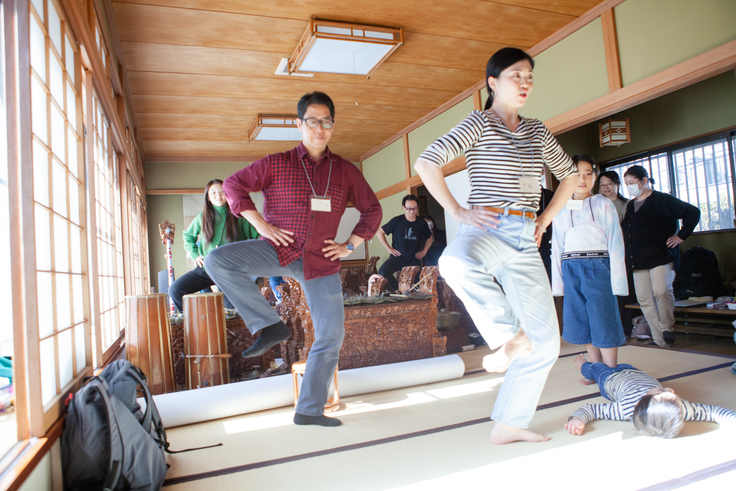 にしても、みなさんの集中力はすごく、休憩の時間も楽器を演奏したり、踊りの動きを振り返ったり、ただただ「楽しい!」という様子で、初日からとてもいい雰囲気でした。