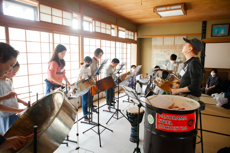 12月16日(土)摂社若宮牛嶋神社・社務所にて、「ほくさい音楽博」スティールパンプログラムの2回目の練習を行いました。