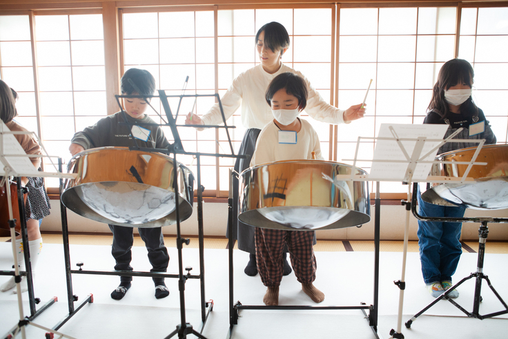 つめこみ教育にならないように、と休憩もいれながらの練習でしたが、子どもたちは休憩中も頭の中はスティールパンのことがいっぱいの様子。