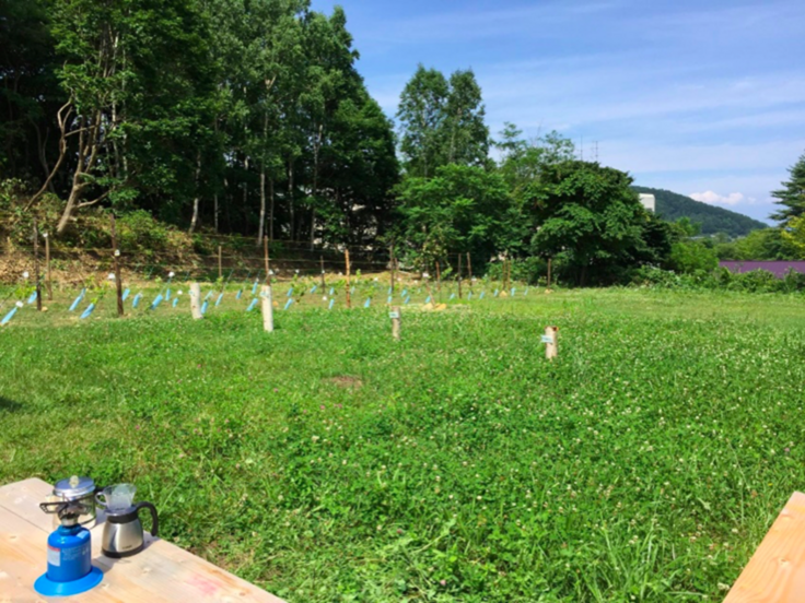 畑の土壌改良にも本腰を入れ、土壌分析の結果を参考に、余市町のJA様からアドバイスを得ながら使用する肥料の選定を行いました。その後、多くの企業のご協力で、拡大した畑をトラクターで耕したり、選定した肥料の散布も行ったり、さらには、「旅路」の苗木100本の定植も行いました。