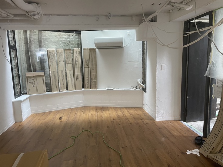 床にタイルが貼られ、内装工事が完了しました。