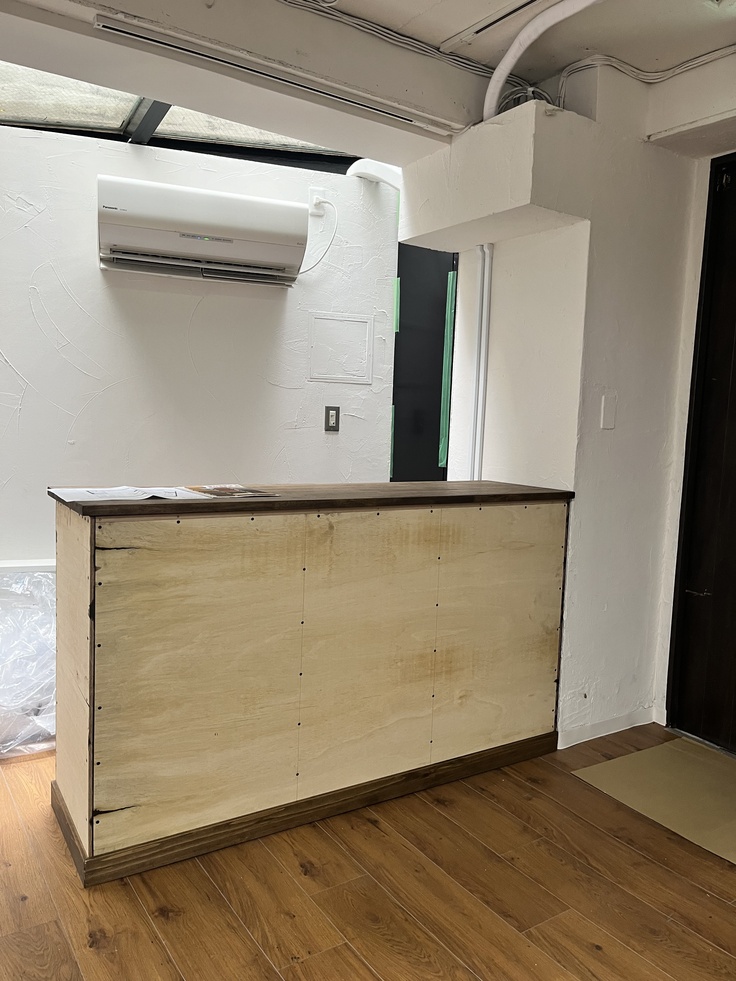 こちらがフロントサイドになります。こちらに先日Hirotake氏に制作していただいたカウンターが入ります。