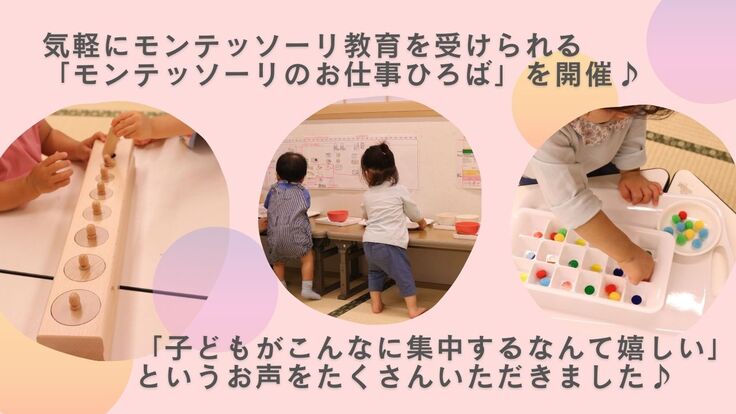 親子教室を開催しお話をする中で、たくさんの親御さまがモンテッソーリ教育に興味を持ち、子どもに受けさせたいと感じてることを実感しました。