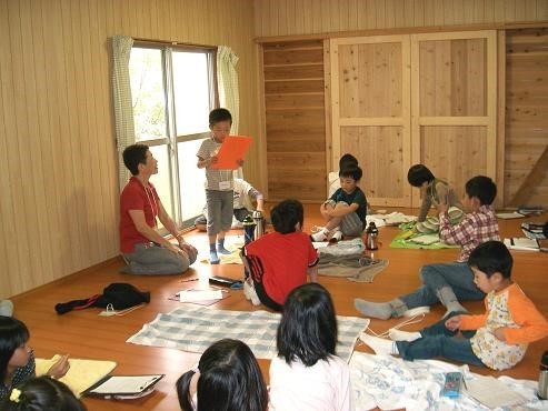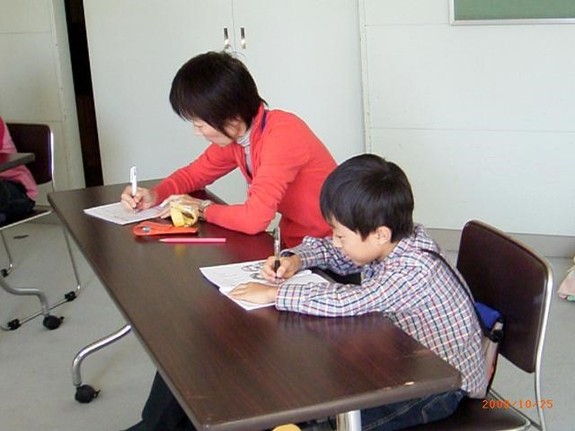 (「いいところ」こんなに書けたよと講師に見せに行く子ども)