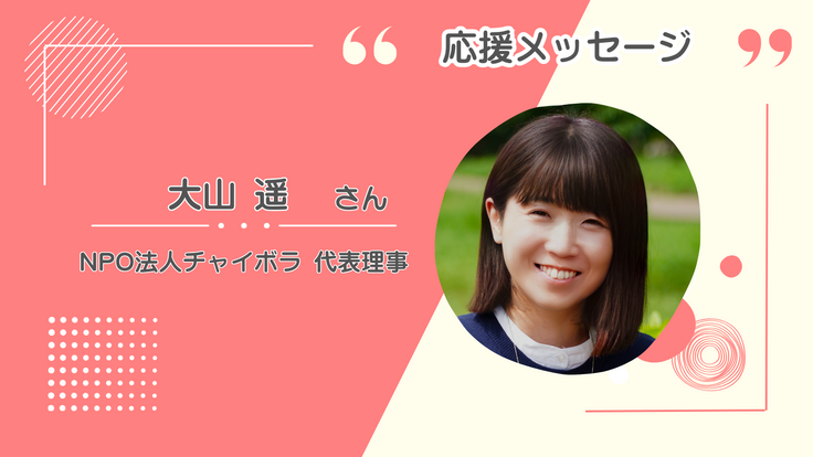 全国各地の児童養護施設で働く職員をサポートすることで子どもたちの成長を支えるNPOの大山遥代表から、自分がママになって感じた実感をもって、応援メッセージをいただきました。