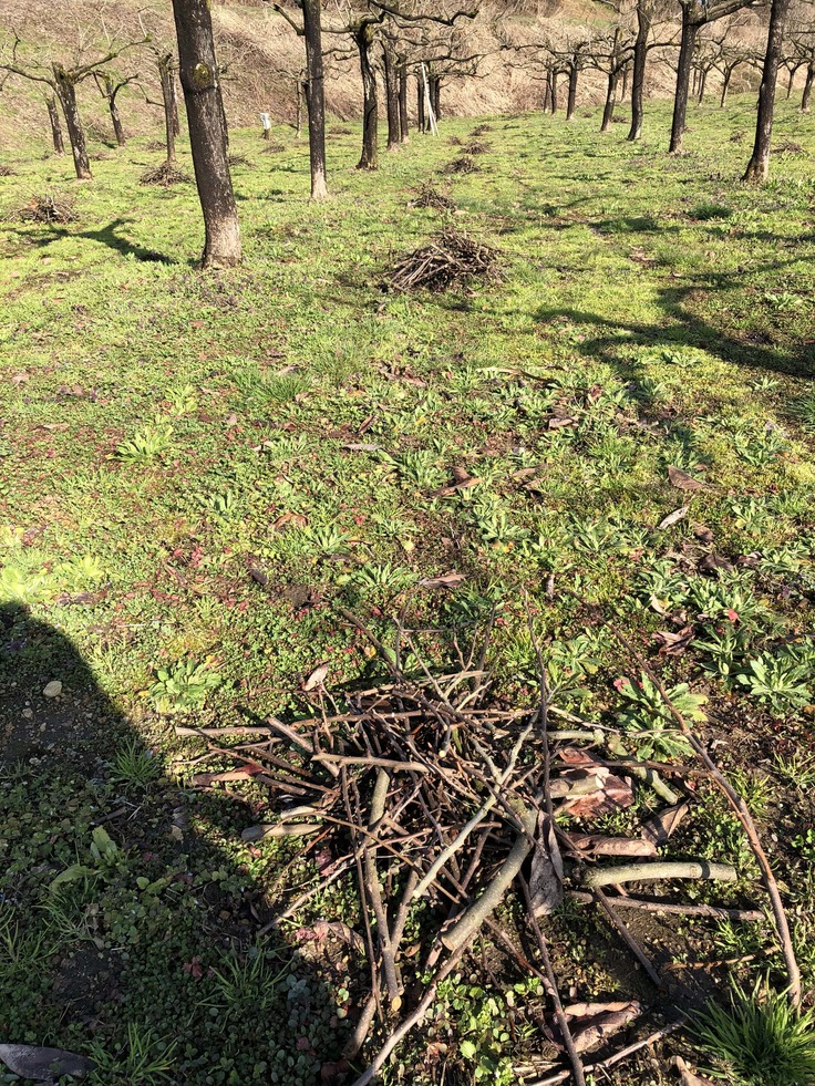 今週は柿の木の剪定後の枝拾いをメインでやっています。あとでチッパー(枝を粉砕する機械)で粉砕しやすくするために長い枝や形のイビツな枝をカットしながらやっているので、思っていた以上に時間がかかっています。。。