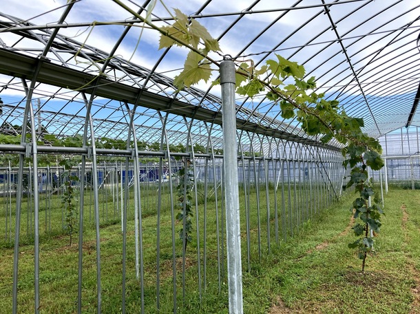 ぶどうの枝はこの時期になっても相変わらず順調に伸び続けていて、いよいよ全体で長いものは12mくらいになりました。