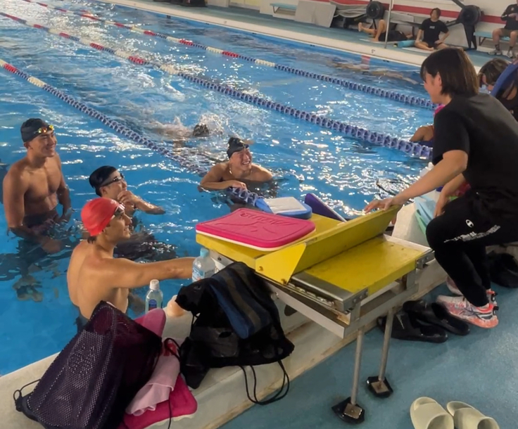 中京大学では先輩、後輩関係なく選手同士で泳ぎのアドバイスをし合っているのが印象的でした。