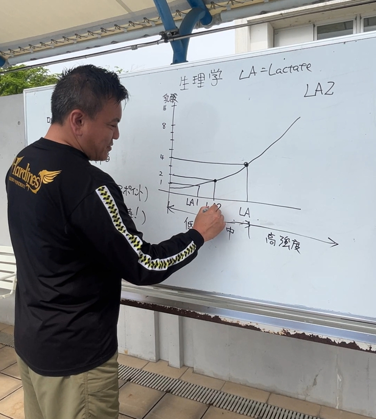佐々木コーチからトレーニング理論や速く泳ぐための考え方を学びました。
