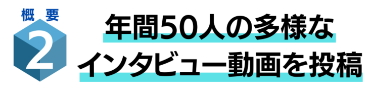 動画は毎週投稿。男性と女性 / 経営者と公務員 / ベンチャーと大企業など、様々なバックグラウンドを持つ大人を取材することで、ユーザーが自分の価値観にあったロールモデルを見つけられるようにします。