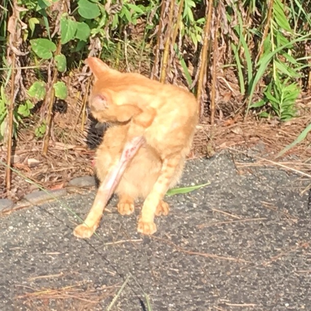 以前猫を譲渡した蒲郡市の方からメンバーのHさんに電話があり、 「子供が野球の帰り、海に近い公園で子猫を見つけた。 保護してくれる人を探したけれど、見つからなくて、公園に戻しに行ったら、そこには酷い状態の猫が沢山いた。 みんな要らない猫を捨ててるらしい」と。 急いでその公園に行ってみると、ガリガリに痩せたり、皮膚病らしく毛がなくなっていたり、足を引きずっている猫がその場にいただけでも5~6匹。 そして写真の大ケガをした猫も出てきました。 ハーツがずっと関わっている有名な「猫捨て場」の公園と同じ愛知県の港湾の管理する公園でした。 両方とも同じように手入れがされていなくて、荒れ果てた公園です。 少し前に傷害事件があったりで、散歩の人も減ってしまっているそうです。 またまた「猫捨て場」に出会ってしまいました。 子猫は5匹いたそうですが、2匹は衰弱していて、いつの間にかいなくなってしまったとのこと。 死んでしまったのでしょう。 Hさんは残り3匹を連れて帰り、病院で治療して自宅に連れて帰りました。 そして今日、私も加わり不妊・去勢の手術のため捕獲器を持って、成猫の捕獲に取り掛かりました。 5時間で5匹捕まえた中に酷いケガをした猫がいました。よかった。 しっかり治療します。 まだ残りは何匹いるのか見当がつきません。 ブルーシートを被せた餌場らしき場所があったので、手紙を置いてきました。 「先日、子猫3匹、今日は5匹の成猫を手術と治療に連れて行きます。この場所の猫達に関する情報が欲しいので、電話を頂きたいです」と書きました。 初めての場所で、状況が分からない場合はいつもこのように手紙を置いて来ます。 電話が来た事は2件だけますが、大抵はなしのつぶて。 何時間も待って、エサをあげている人を見つけたりしています。 エサをあげている人は早朝か夜、人に出会わないようにしている場合が多いのですが、出会うまで通います。 全部手術が済む間で終われません。 明日もHさんはこの公園に出かけて行きます。