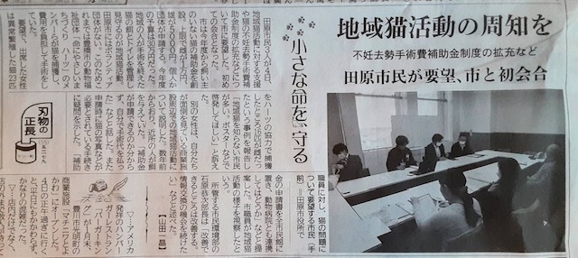 一昨日、田原市民と田原市役所の市民環境部長、環境政策課職員が田原市ののら猫問題について話し合いをもちました。