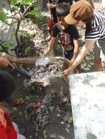 もともと数の足りなかったほうきやちりとりを購入し、それでも道具が足りないため、ほとんどの参加者は素手でごみを集めていました。