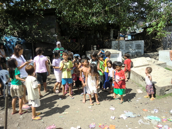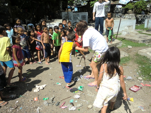 ゲームの後に配ったスナックの袋をきちんとゴミ箱に捨てる子供たち。当たり前でも、一年前には出来なかったことです。