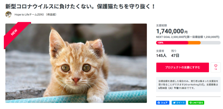 【達成御礼】最終日まで猫さんを守るチャレンジを続けます!