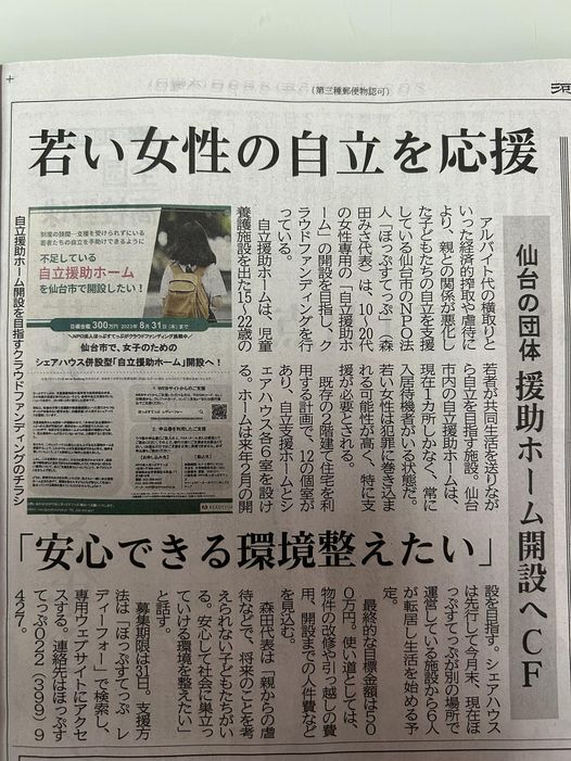 河北新報に掲載されました!