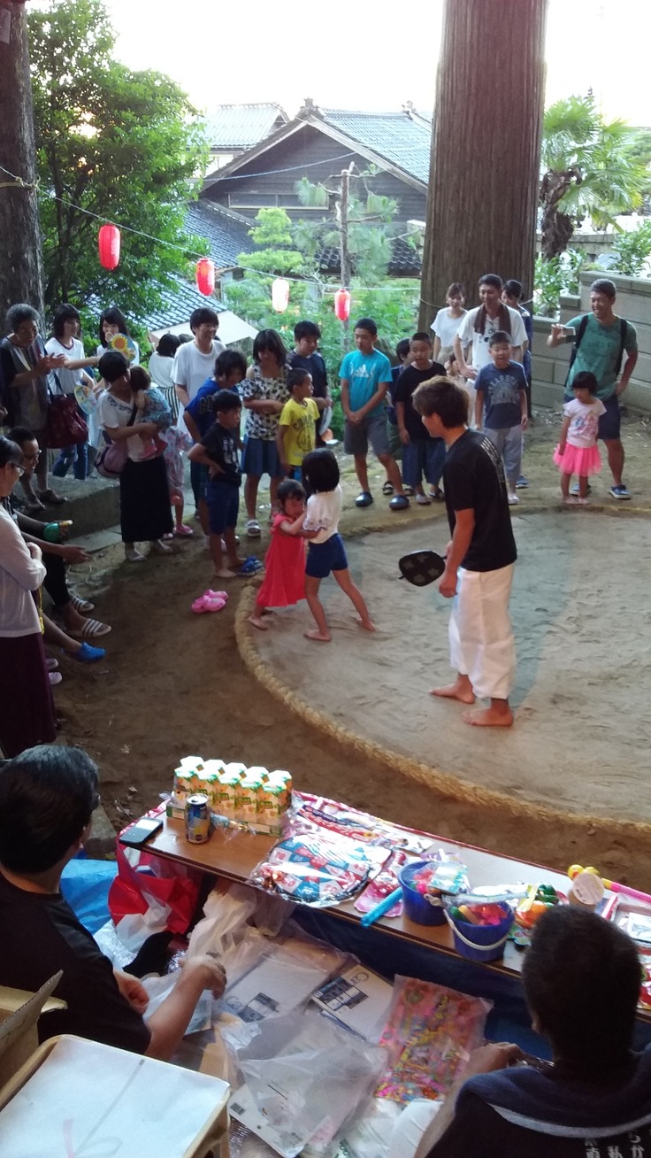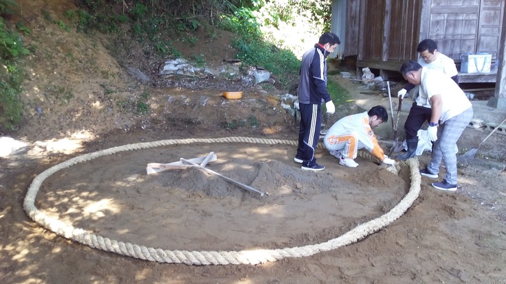 前年に使用した大綱で土俵を作り、ちびっこ相撲と神事相撲を行います。