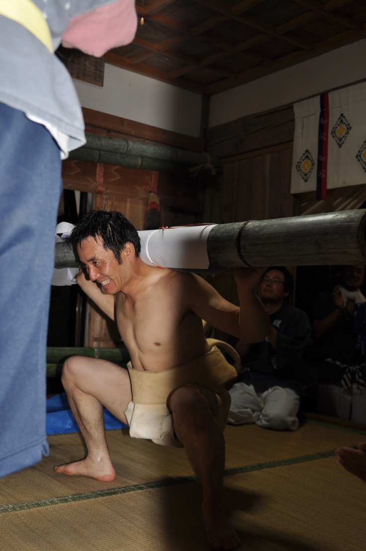 青年角力の大関を決める神事相撲では、5人抜きを制した方が大関となり御幣が授与される。