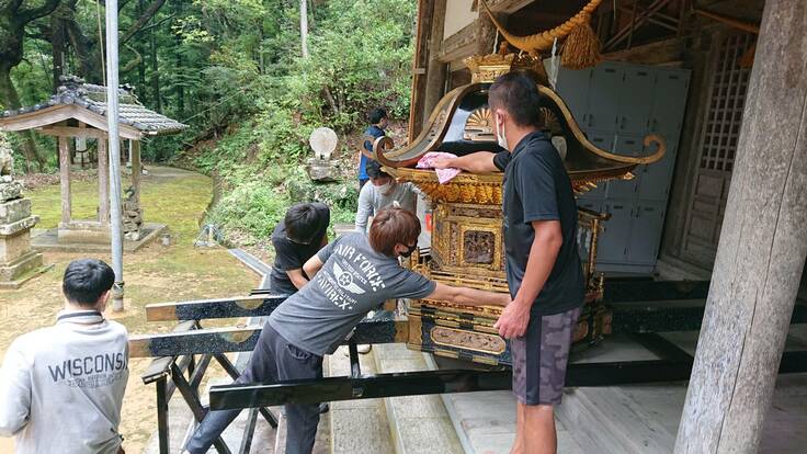 お神輿は、ほこりを落とすため2年ぶりにお目見えしました。