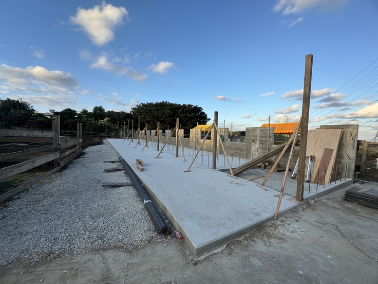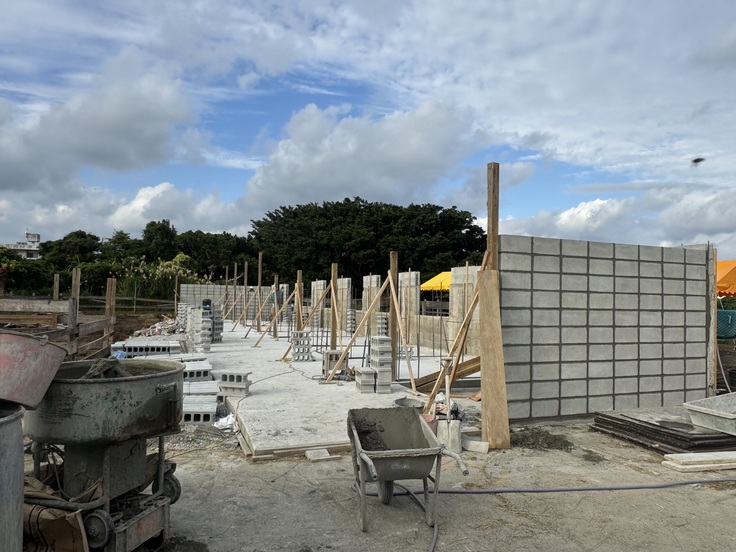 今週はここまで進み、明日から引き続きセメントで土台作りです。なんとか今月末までには屋根を張れるように職人様も頑張ってくれています。ゴムマットや自動給水機等の発注も済ませ、取り付けを待つのみです。