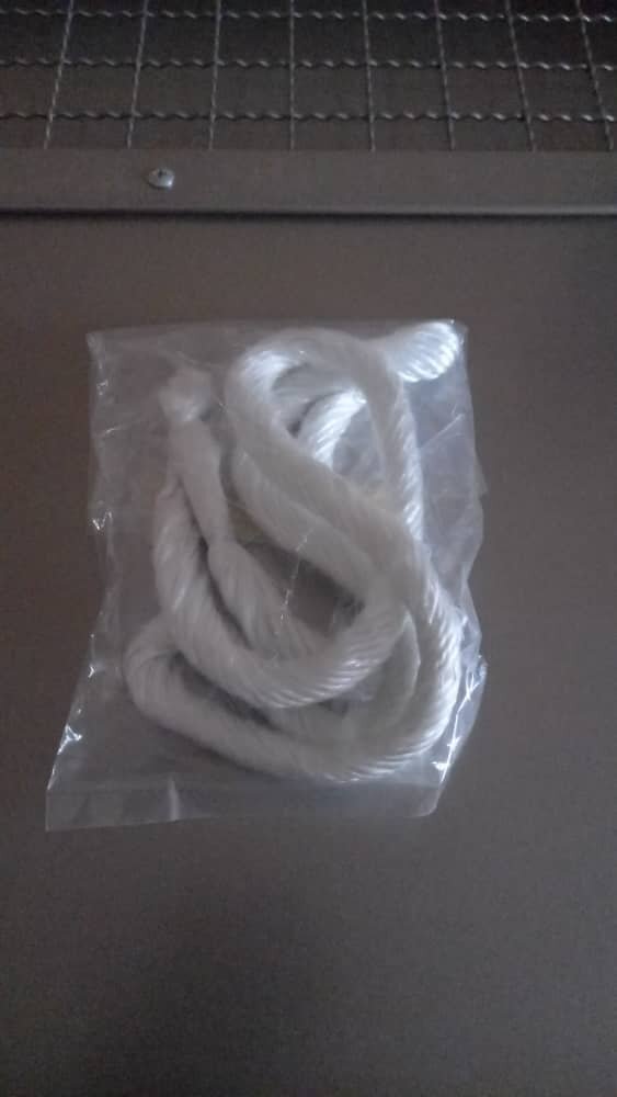 例えば、このロープの切れ端みたいなもの、実はダクト用の防火剤。弊社スタッフはゴミだと思って、箱に戻さずに捨てるものと一緒にしていました。