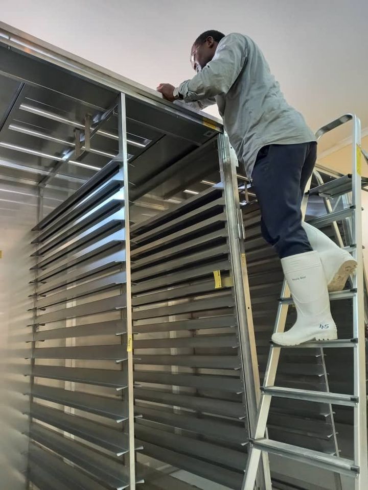 あとは乾燥室の扉や灯油バーナーを組み、配電盤や電気系統の配線をすれば完成です。だいたい半分くらいは組みあがったと思います。