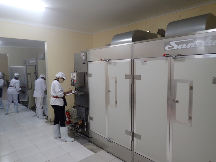 試運転も終わったので、新しい乾燥機で製造を始めました。記念すべき初回はパイナップルの乾燥です。今までの3倍の原料を下準備するので、だいぶ遅くなってしまいました。
