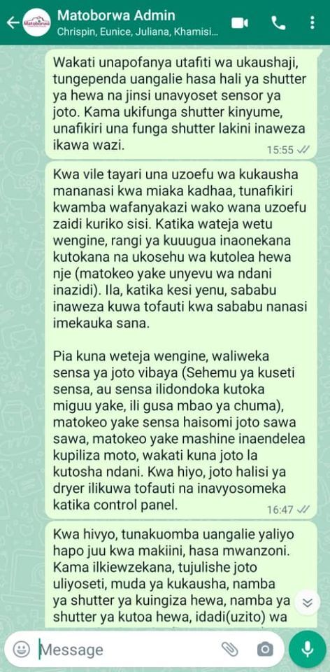 それらを一つ一つ検証して、新しい乾燥機を使いこなせるようにしていきます。まずは頂いたメールをスワヒリ語に翻訳、社内にSNSで共有しました(弊社は幹部には社用スマホを供与、通信料は無制限に支給しています)。